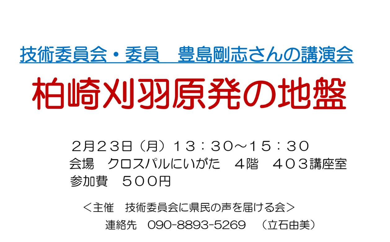 【終了】★技術委員会委員・豊島剛志さん講演会「柏崎刈羽原発の地盤」★