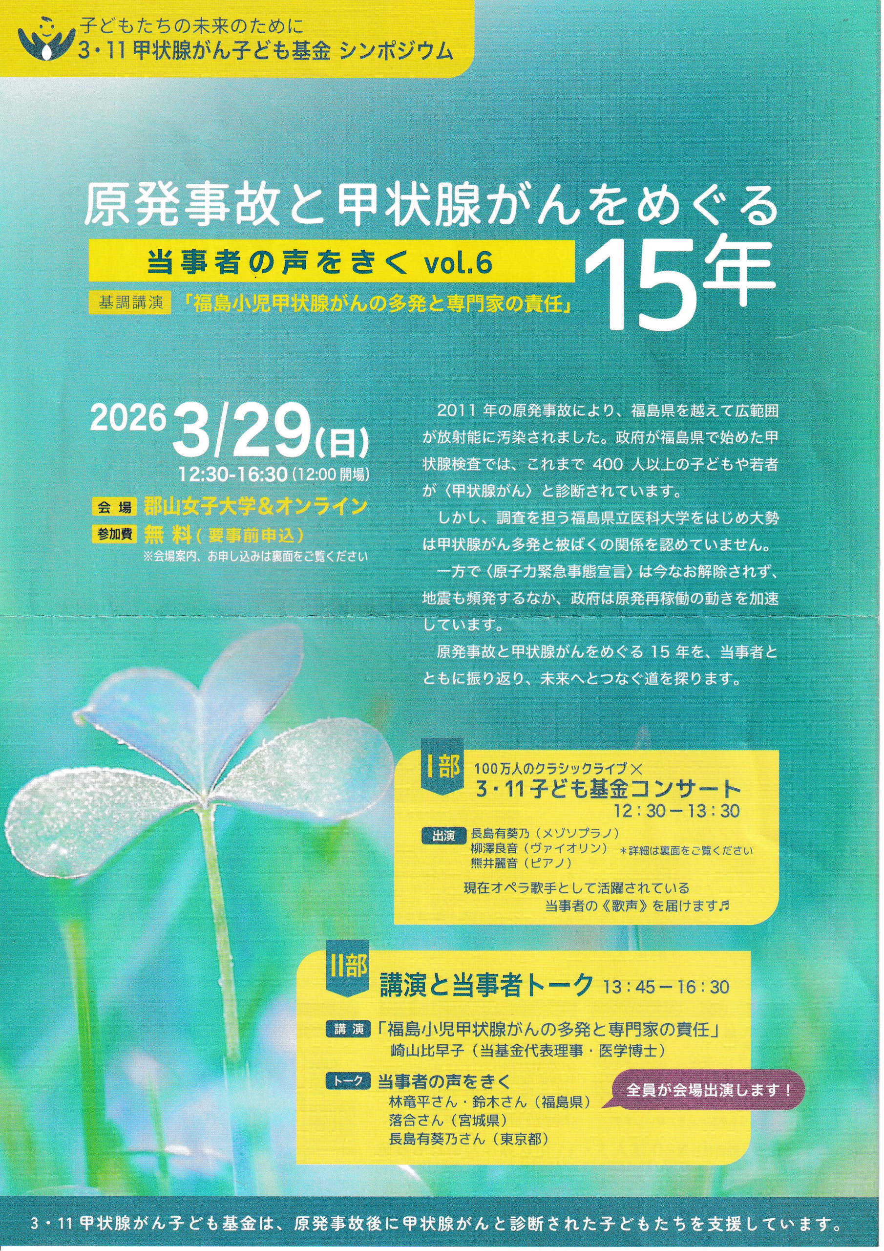 ★3・11甲状腺がん子ども基金シンポジウム 原発事故と甲状腺がんをめぐる15年★(3/29)