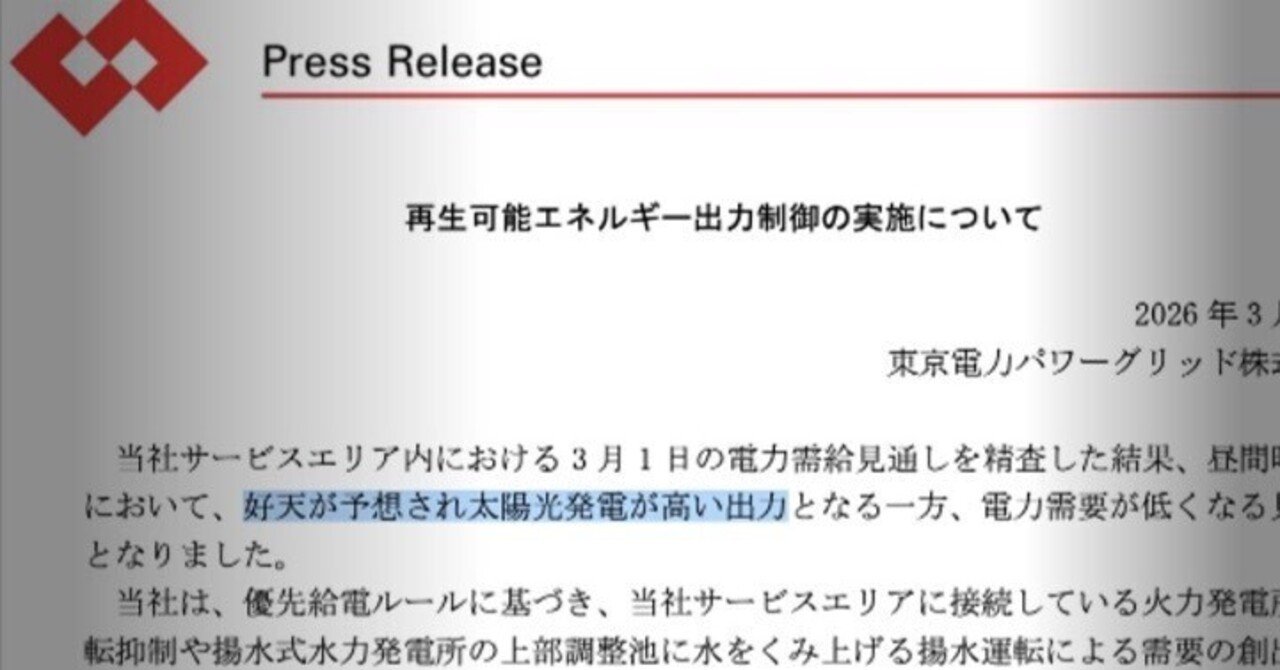 首都圏でも始まった再エネ抑制―やがて柏崎刈羽原発が再エネの需要を奪う構図