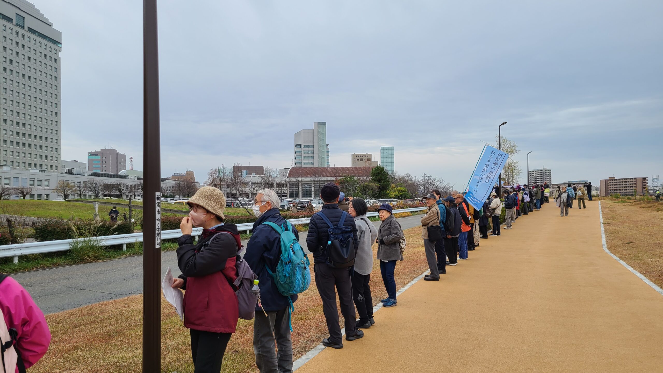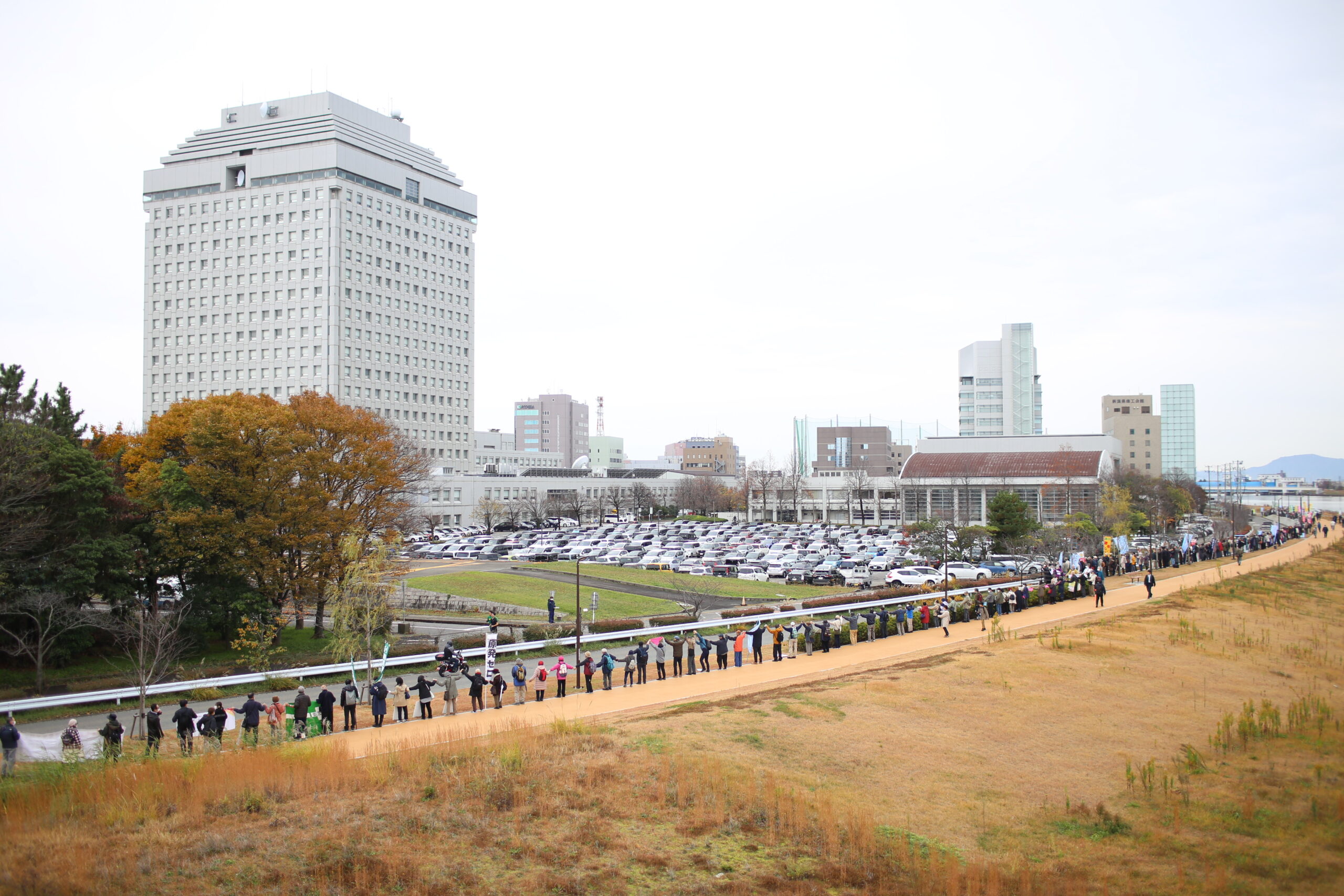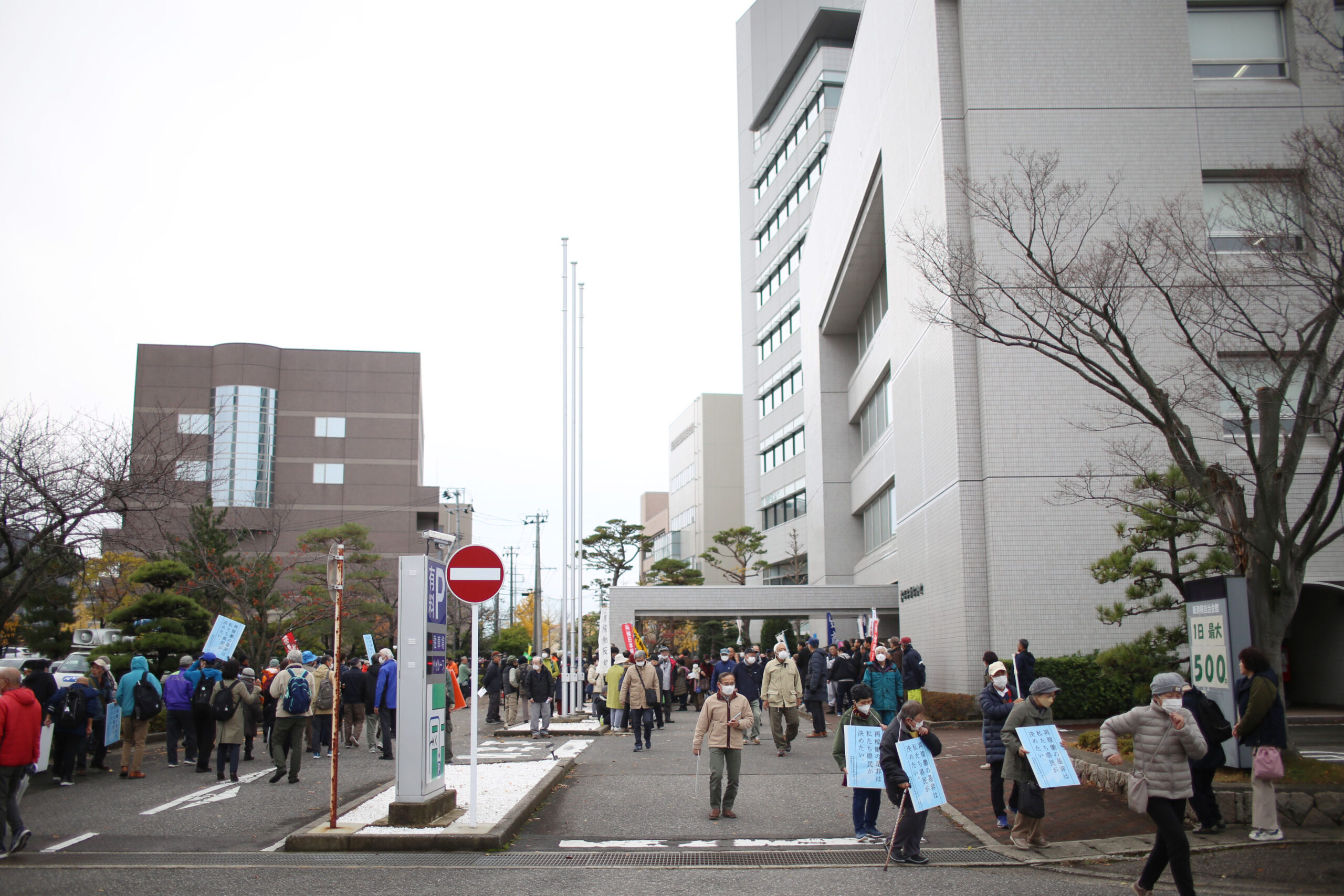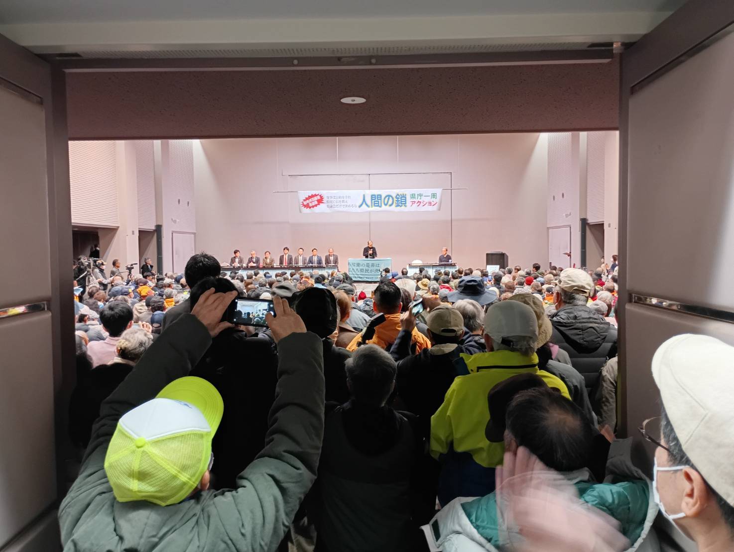 2025年11月25日(火)「新潟県庁・県議会を人間の鎖で包囲しよう」アクションは、1200人超の参加者が県庁一周を囲み、