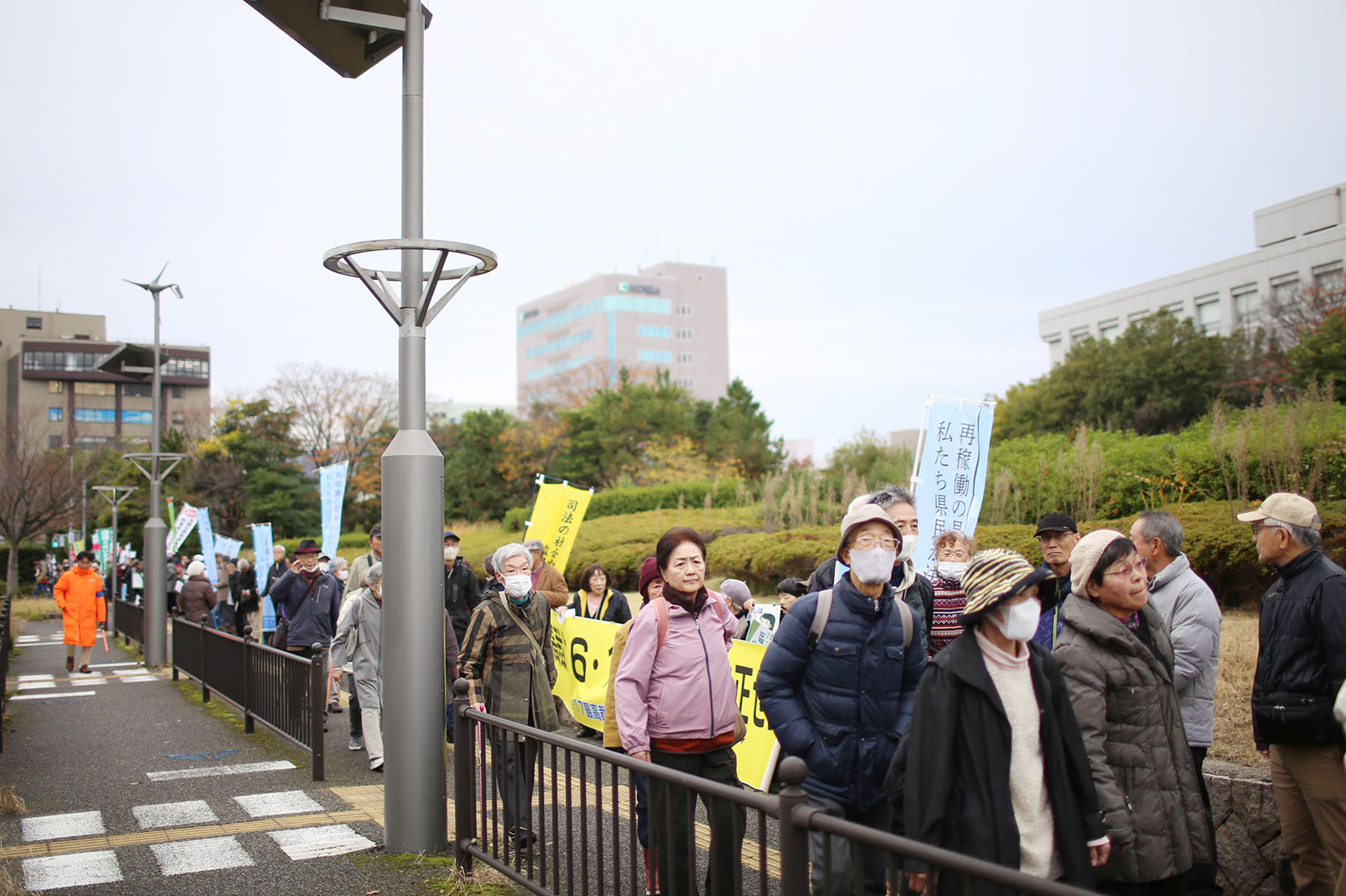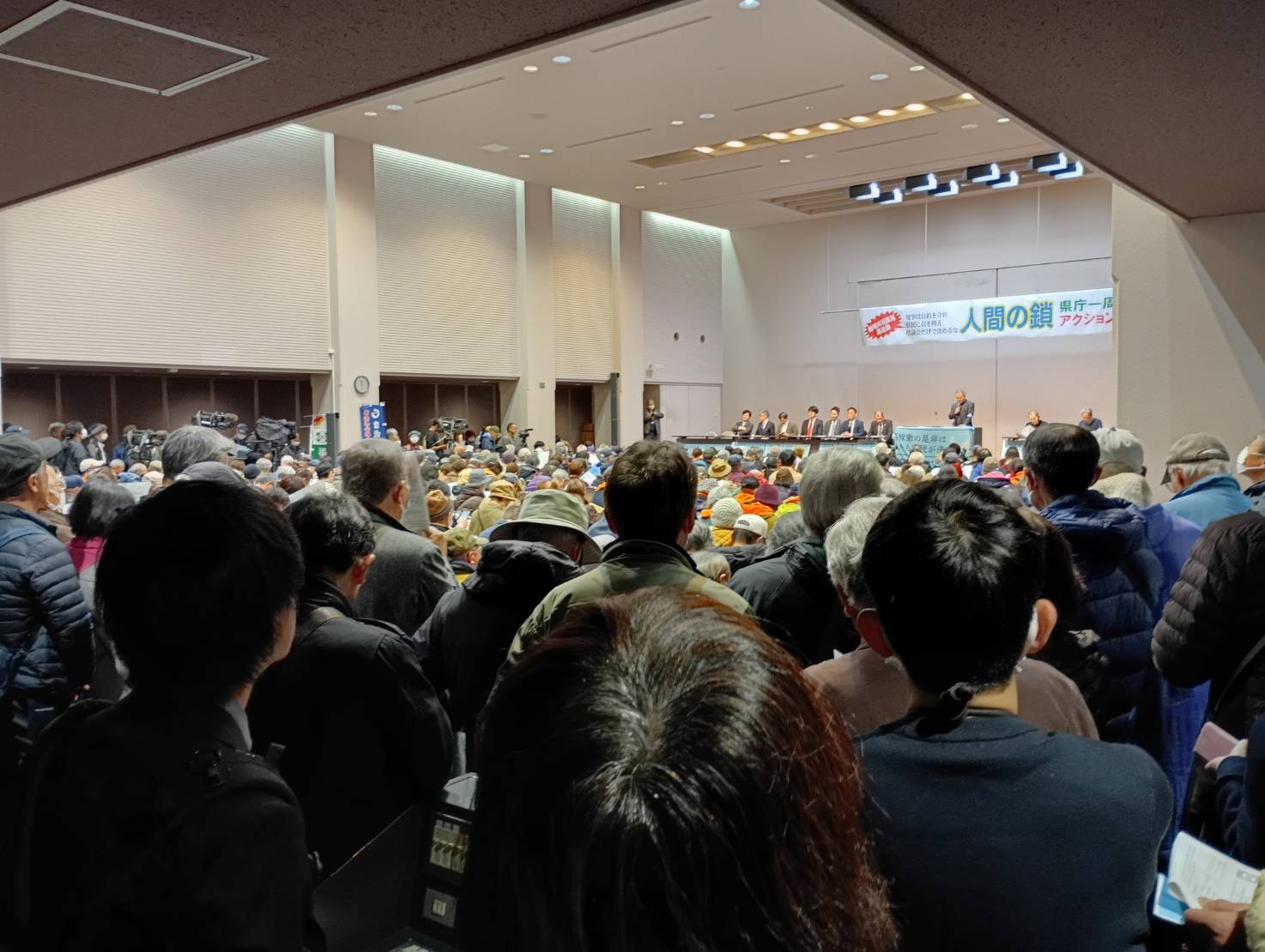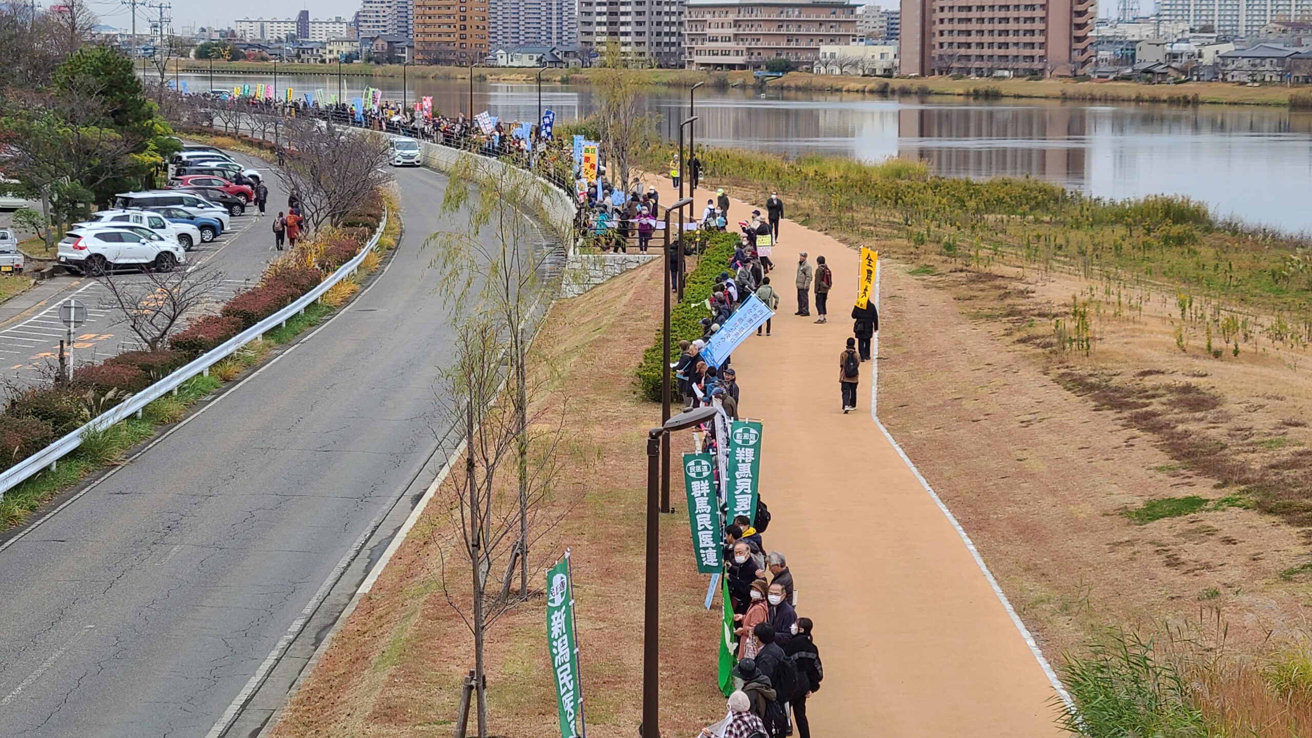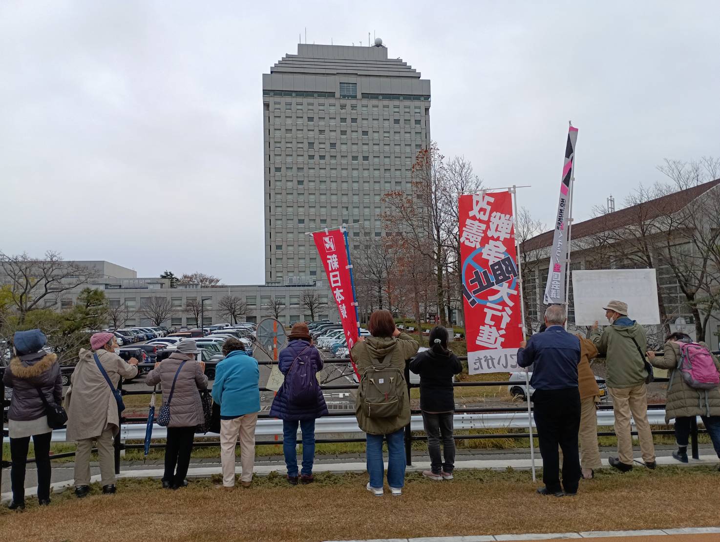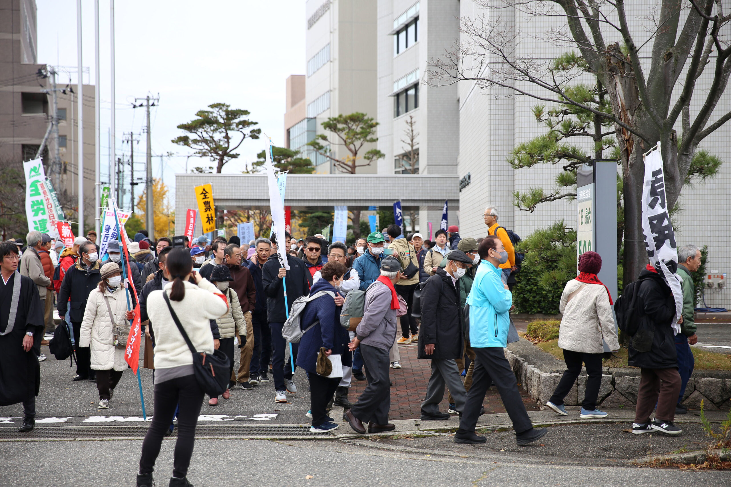 2025年11月25日(火)「新潟県庁・県議会を人間の鎖で包囲しよう」アクションは、1200人超の参加者が県庁一周を囲み、