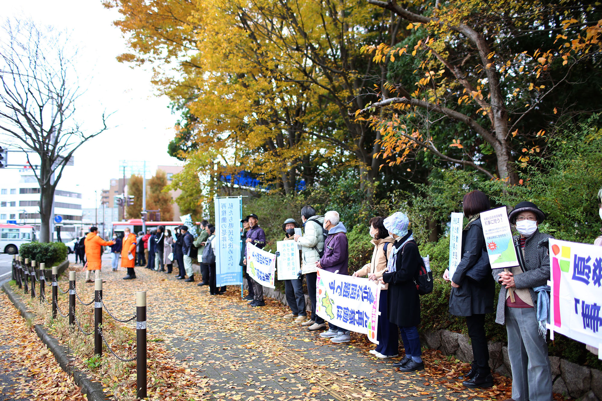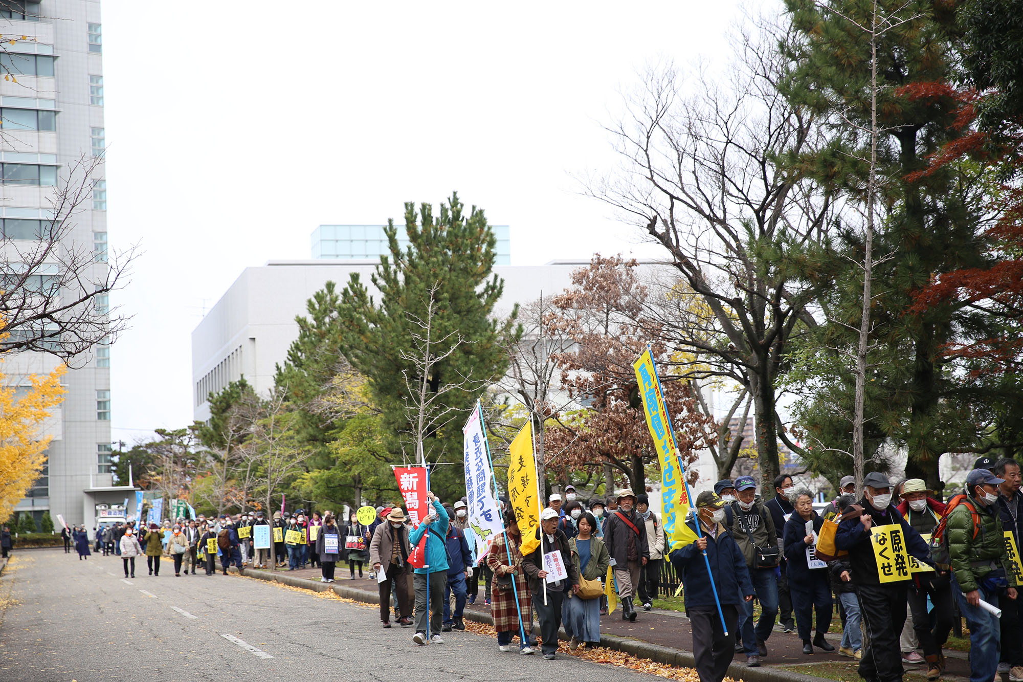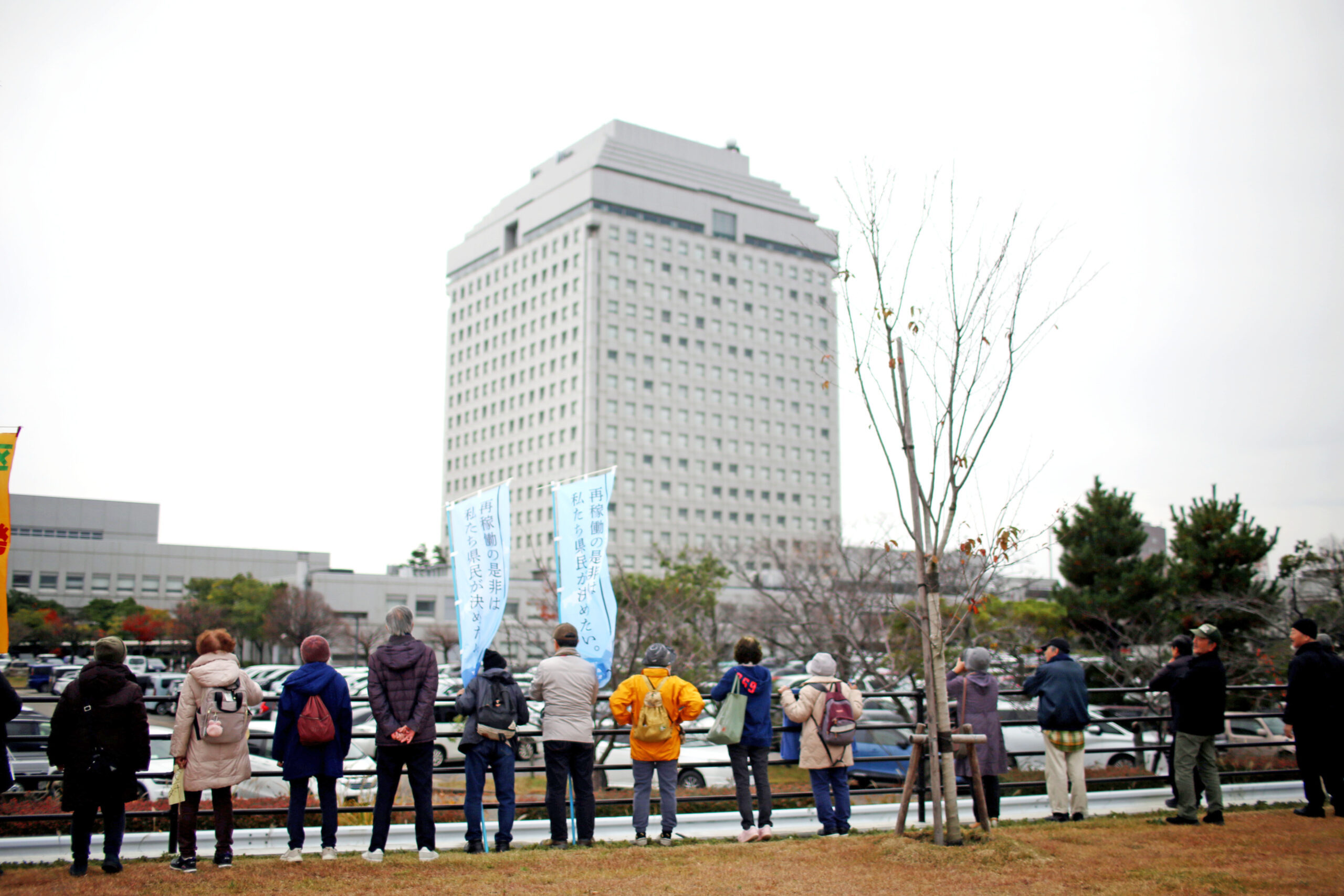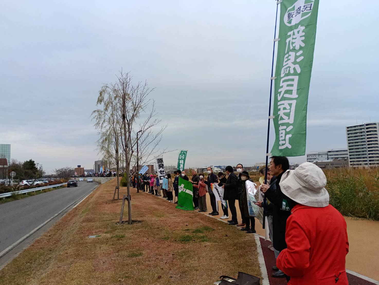 2025年11月25日(火)「新潟県庁・県議会を人間の鎖で包囲しよう」アクションは、1200人超の参加者が県庁一周を囲み、