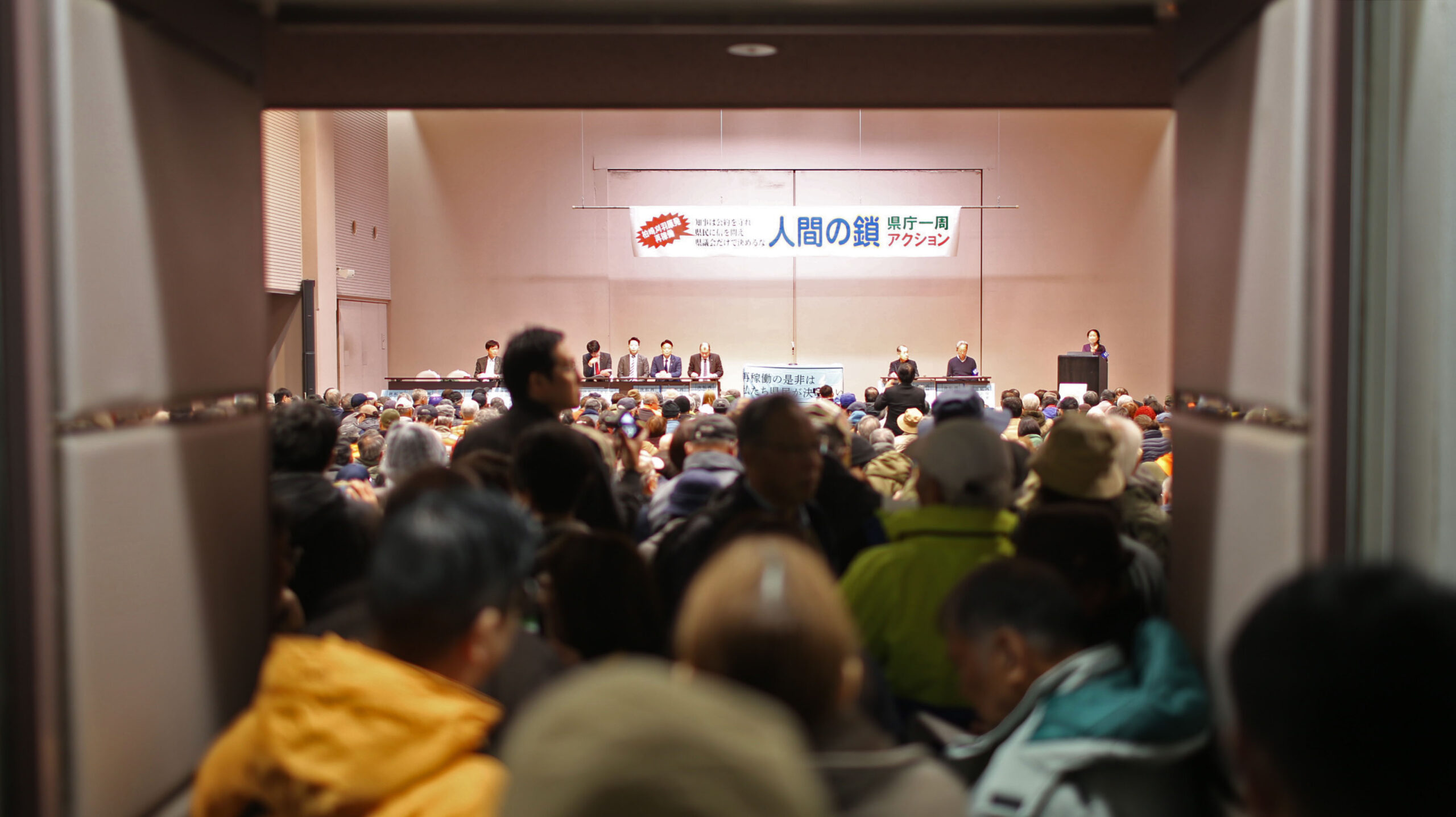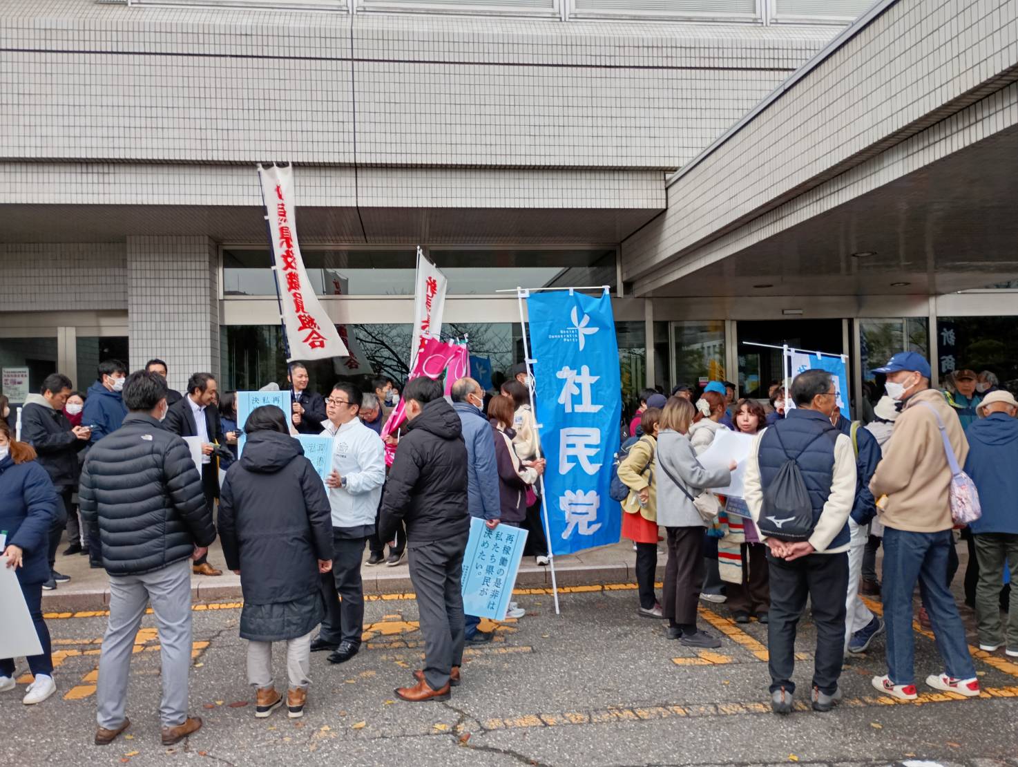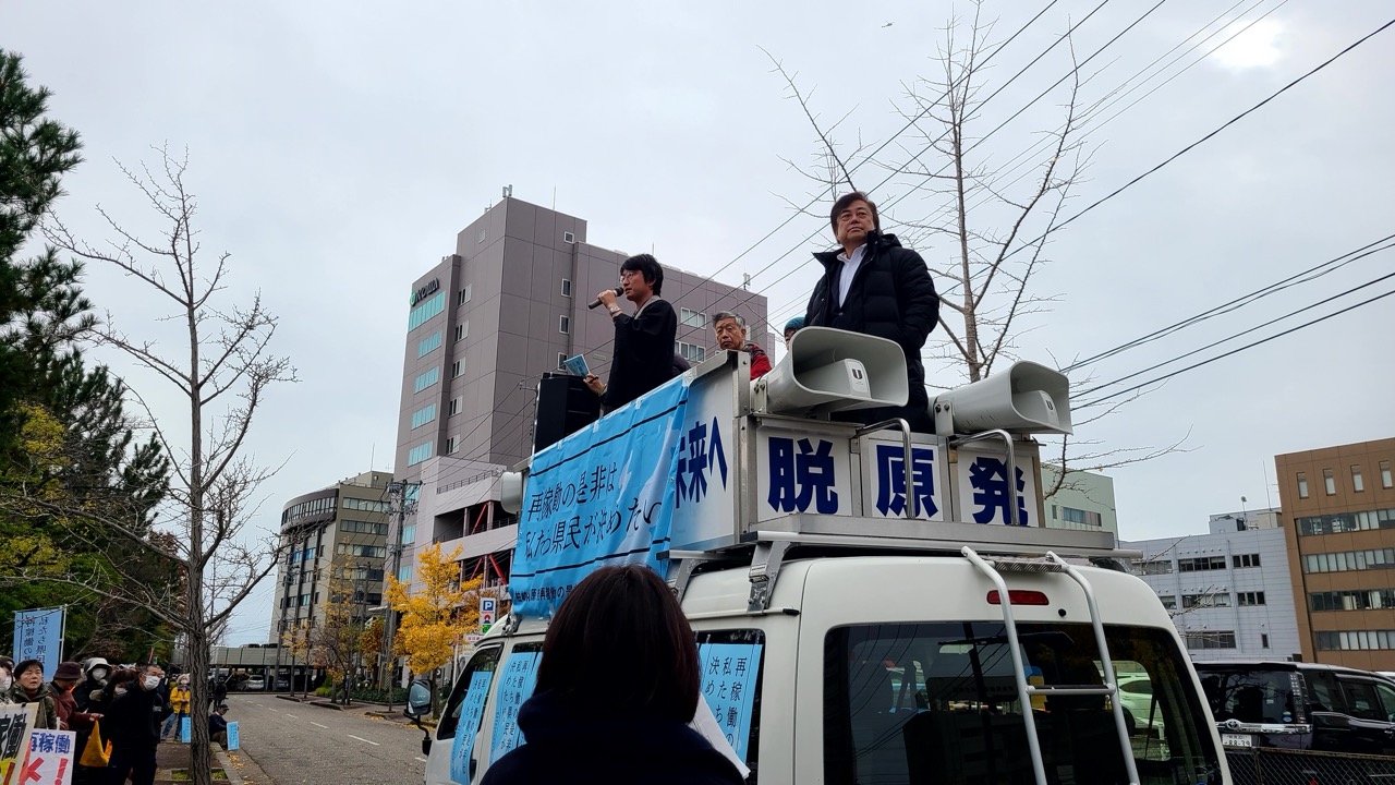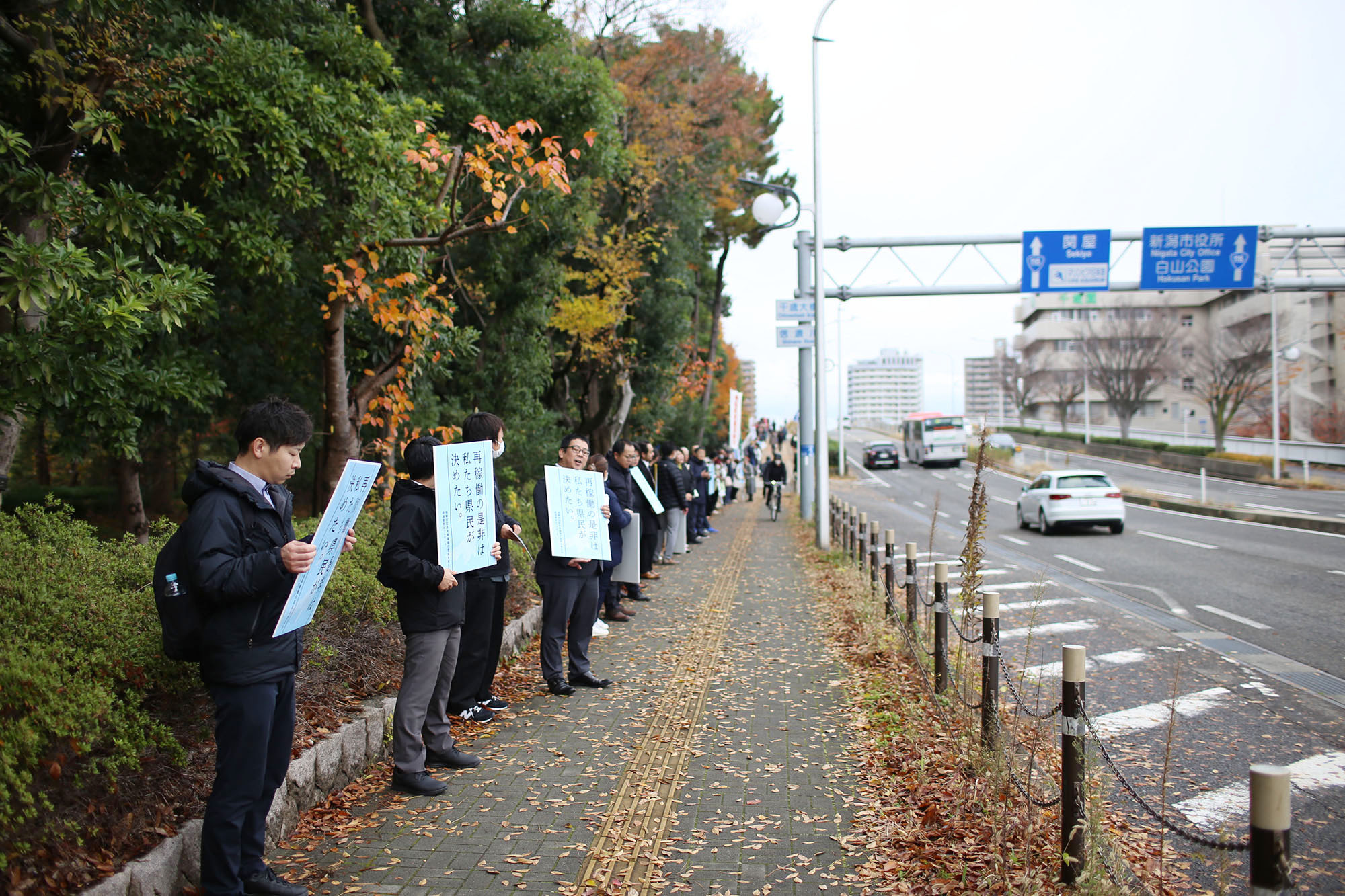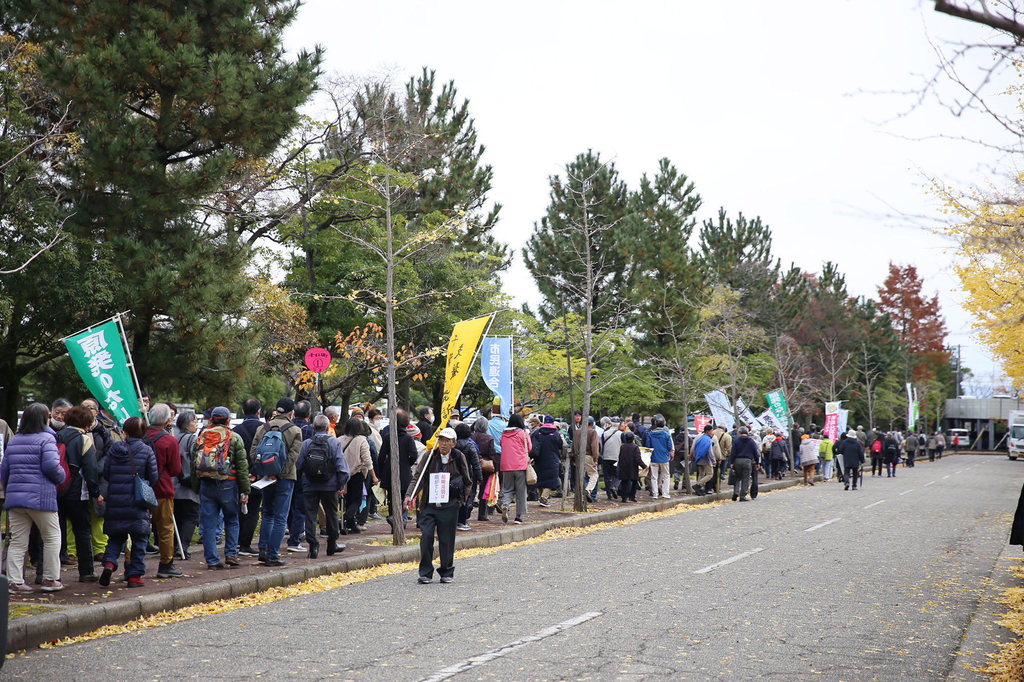 2025年11月25日(火)「新潟県庁・県議会を人間の鎖で包囲しよう」アクションは、1200人超の参加者が県庁一周を囲み、