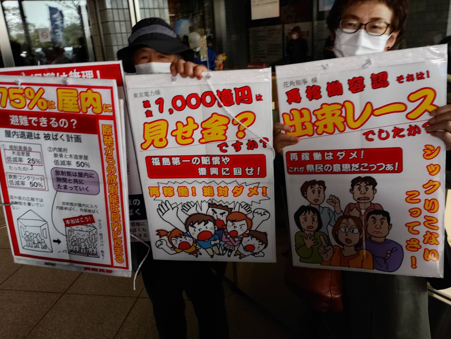 「原発再稼働は 私たち県民が決めたい。」~「知事は公約を守れ 県民に信を問え 県議会だけで決めるな!」を、多彩にアピールしました。