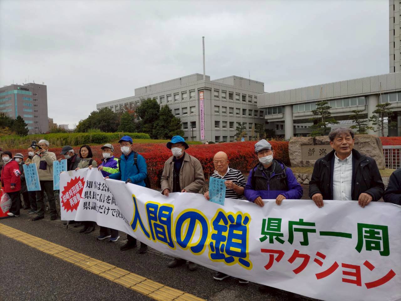 2025年11月25日(火)「新潟県庁・県議会を人間の鎖で包囲しよう」アクションは、1200人超の参加者が県庁一周を囲み、「原発再稼働は 私たち県民が決めたい。」~「知事は公約を守れ 県民に信を問え 県議会だけで決めるな!」を、多彩にアピールしました。